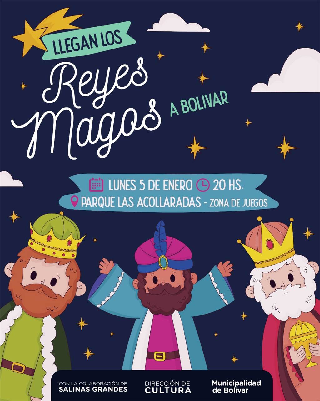 A partir de las 20:00hs, el Parque Municipal será el punto de encuentro donde niños y niñas podrán recibir a Melchor, Gaspar y Baltasar en un entorno pensado para el disfrute y la seguridad de todos.