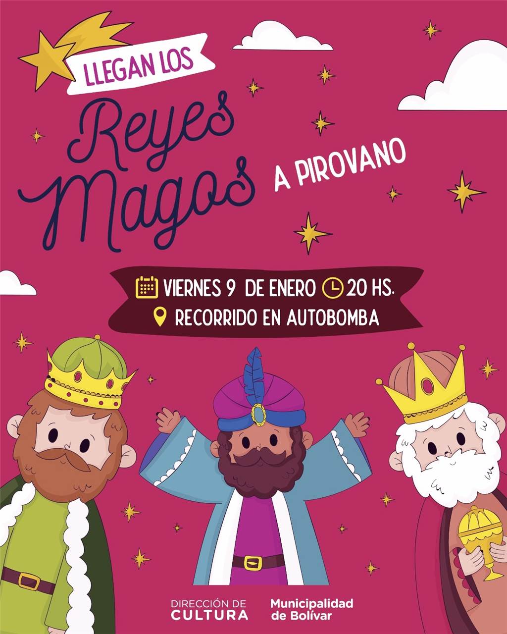 Como cada año, la Dirección de Cultura trabajó junto a las Delegaciones Municipales para que la magia de los Reyes Magos llegue a todas las localidades: Hale los recibirá el mismo lunes 5 de enero, mientras que en Urdampilltea será el jueves 8 y en Pirovano el viernes 9.