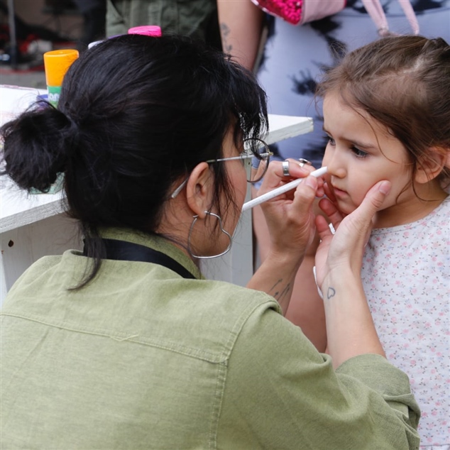 Minutos antes de la primera función, el público fue recibido con una propuesta especial que incluyó música en vivo a cargo del violinista Diego Peris, pintura de caras para niños y niñas, y un espacio para fotografías junto a los posters de la película, generando un clima de festejo y encuentro.