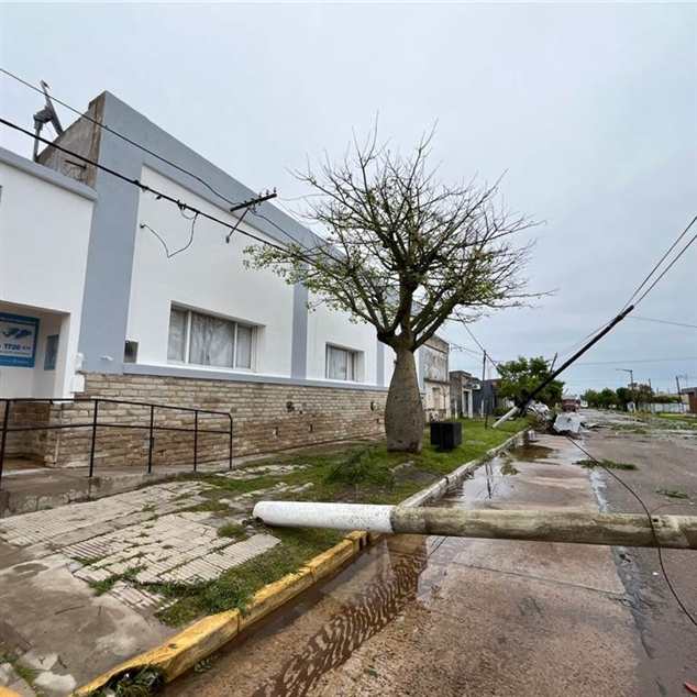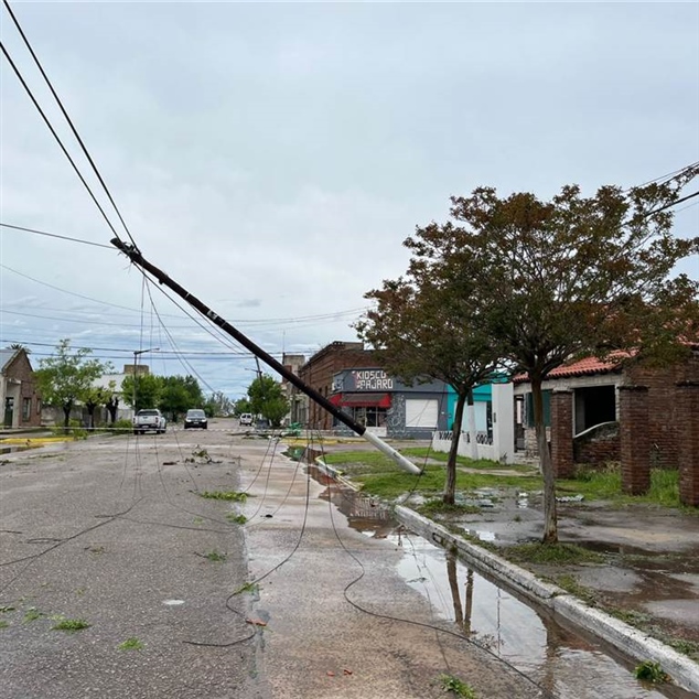 Durante la madrugada, Urdampilleta fue afectada por un fuerte temporal que dejó 140 milímetros de lluvia hasta las 4.30 hs, provocando la caída de más de 100 postes del tendido eléctrico, 40 árboles de gran porte y daños en más de 50 viviendas, con techos, mamposterías y portones destruidos.