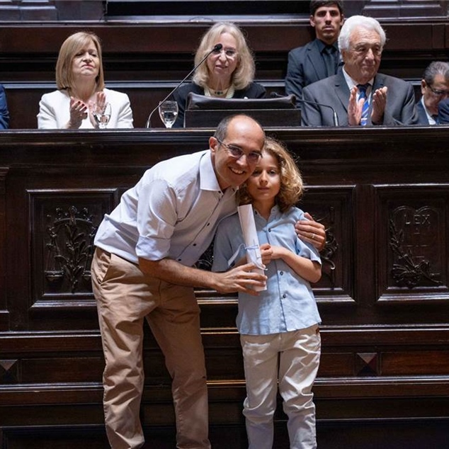 Acompañado por su hijo Valentino recibió el diploma que certifica previo a la jura, la elección del mandatario como Senador Provincial.