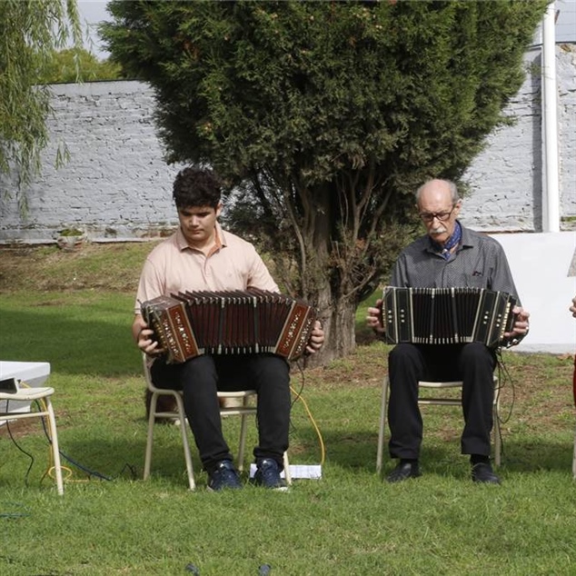 El Himno Nacional Argentino y la Marcha de Malvinas fueron interpretados por un trío de bandoneones integrado por Rubén Exertier junto a María Alejo y Nicanor Pagola.
