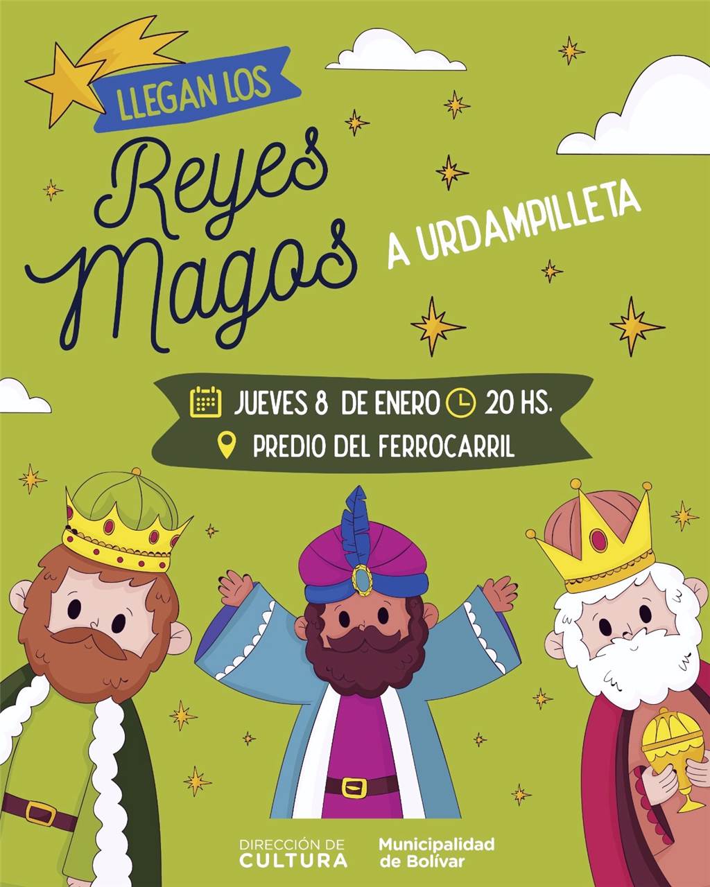 Como cada año, la Dirección de Cultura trabajó junto a las Delegaciones Municipales para que la magia de los Reyes Magos llegue a todas las localidades: Hale los recibirá el mismo lunes 5 de enero, mientras que en Urdampilltea será el jueves 8 y en Pirovano el viernes 9.