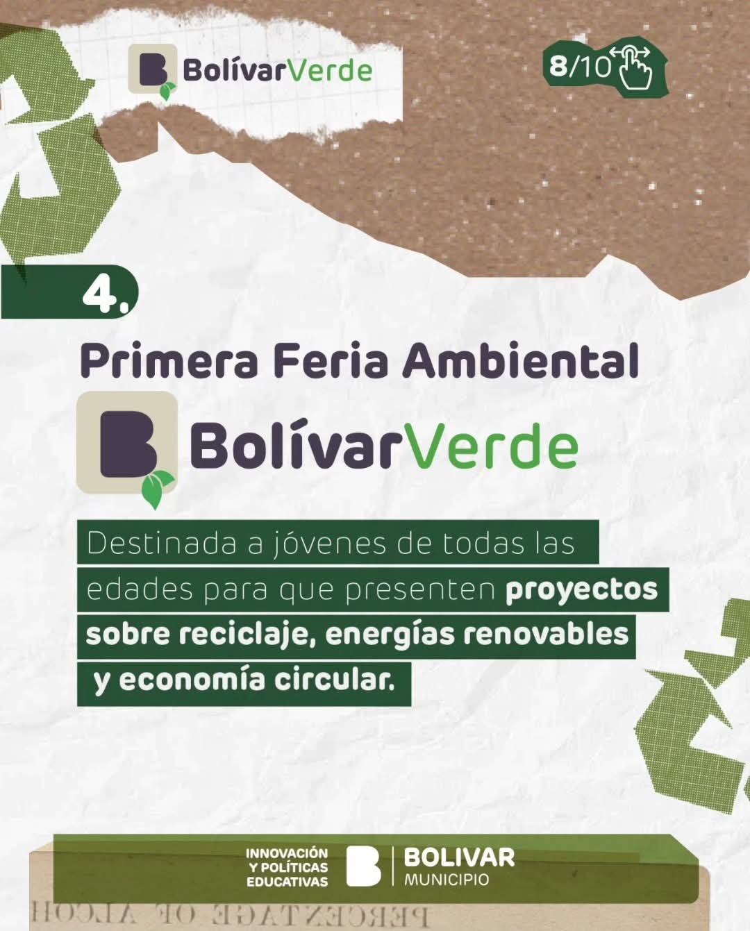 * La primera Feria Ambiental Bolívar Verde, pensada como un ámbito de participación activa donde jóvenes y estudiantes serán protagonistas, compartiendo proyectos, ideas y experiencias.