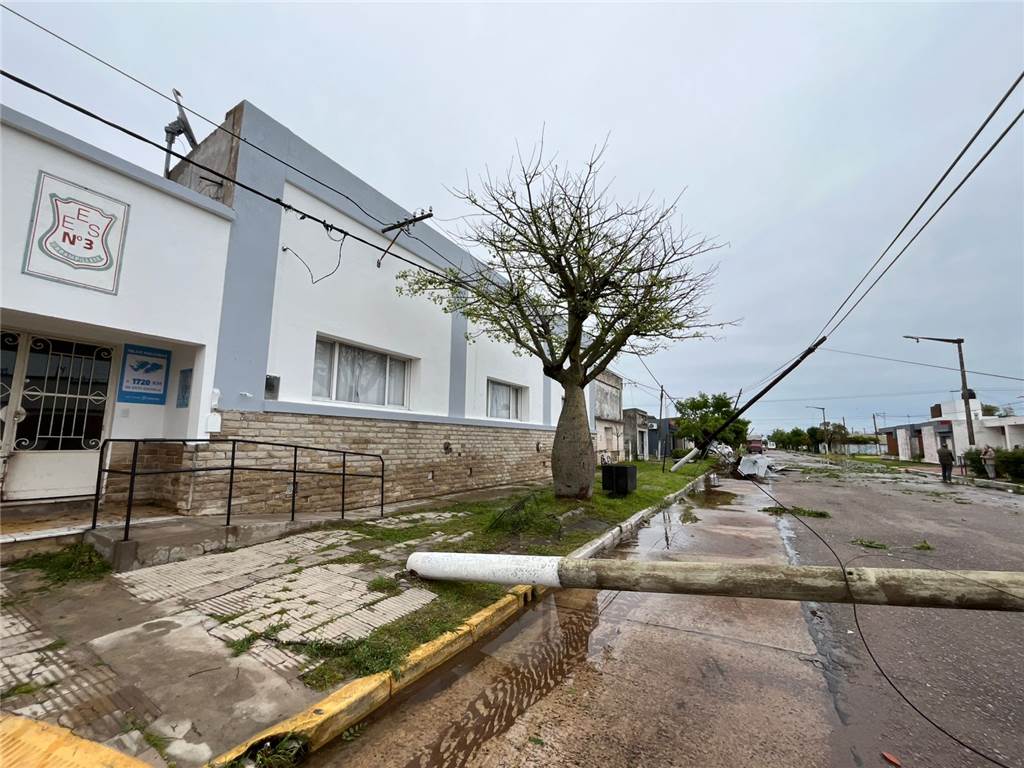 Durante la madrugada, Urdampilleta fue afectada por un fuerte temporal que dejó 140 milímetros de lluvia hasta las 4.30 hs, provocando la caída de más de 100 postes del tendido eléctrico, 40 árboles de gran porte y daños en más de 50 viviendas, con techos, mamposterías y portones destruidos.