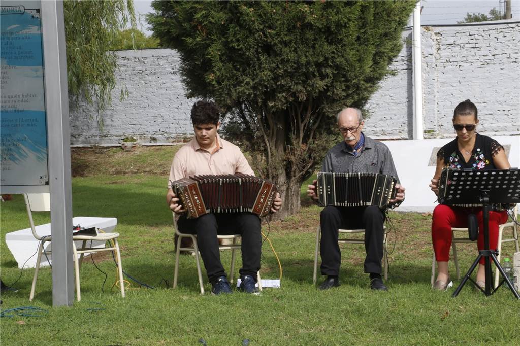 El Himno Nacional Argentino y la Marcha de Malvinas fueron interpretados por un trío de bandoneones integrado por Rubén Exertier junto a María Alejo y Nicanor Pagola.