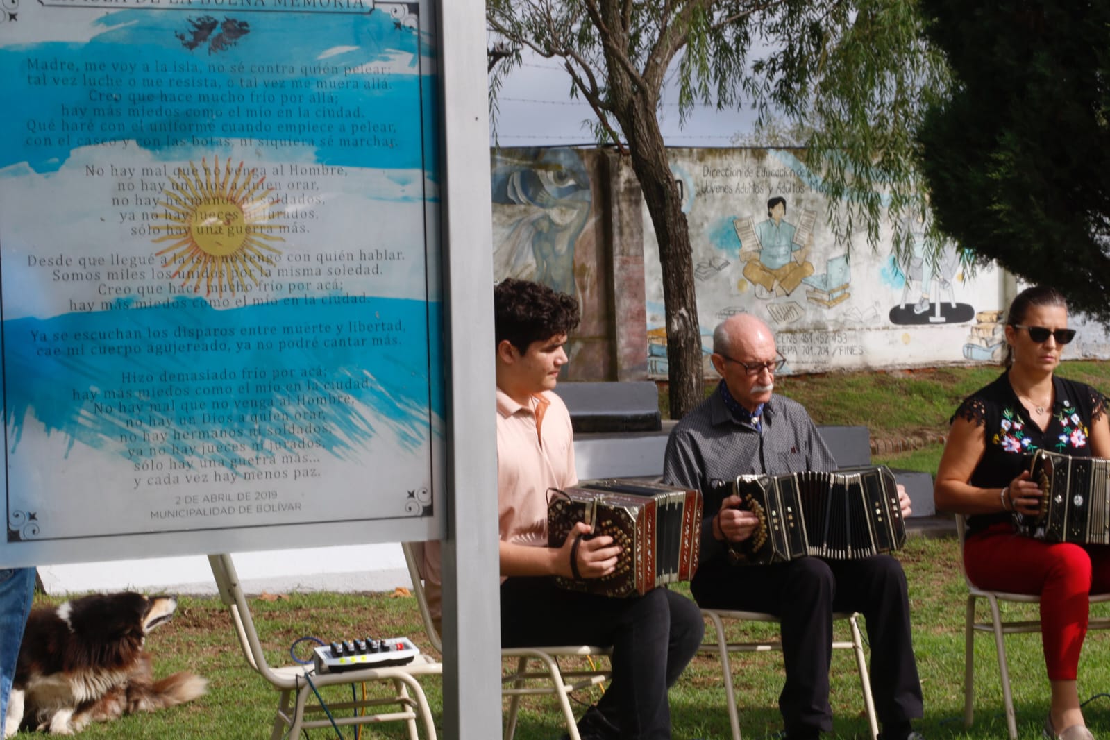 La jornada fue encabezada por el intendente municipal, Bali Bucca, junto a veteranos de la ciudad como César Alí, Fabián Sgarlatta, Juan Carlos Agüero y Luis Herrera, así como familiares de Horacio José Echave, soldado bolivarense caído en combate el 14 de junio de 1982, y el recordado Adrián Plácido.