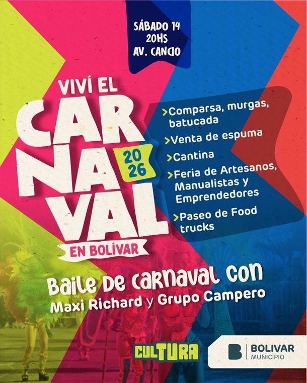 La jornada con entrada libre y gratuita, contará con la participación de comparsas, murgas y batucadas, además de un gran baile popular con Maxi Richard y Grupo Campero, generando un espacio de encuentro que pone en valor nuestras expresiones culturales y el trabajo de artistas locales.