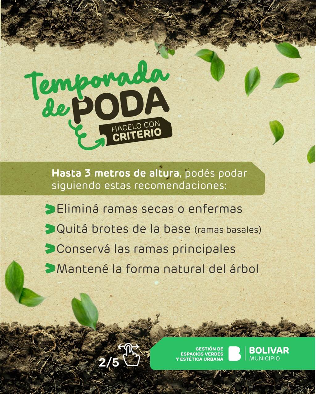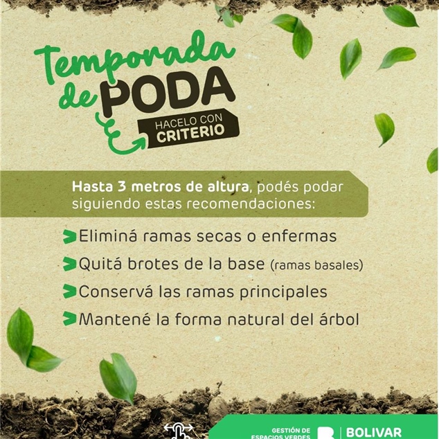 Desde el área también se informa que, en el caso de árboles que superen los tres metros de altura, se debe solicitar la intervención del equipo municipal, que cuenta con el personal y las herramientas adecuadas para realizar las tareas de poda de manera segura.