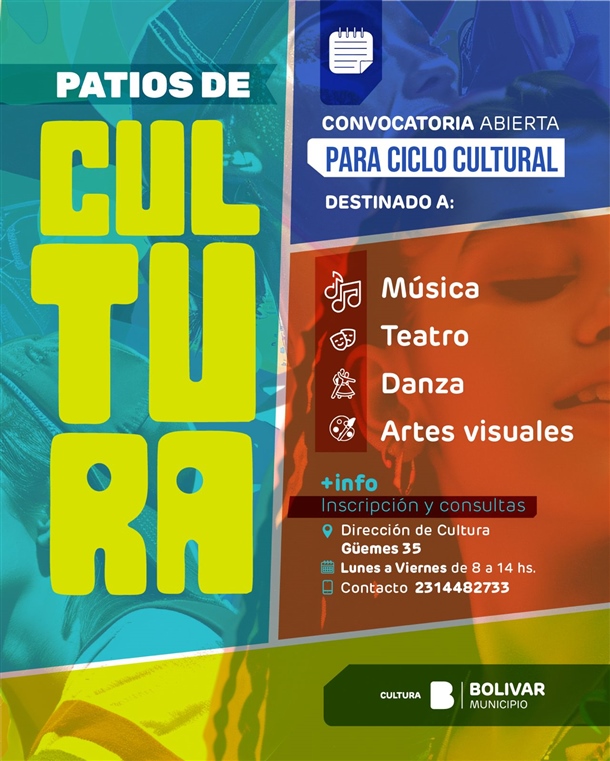 Las personas interesadas pueden inscribirse y realizar consultas en la Dirección de Cultura, ubicada en Güemes 35, de lunes a viernes de 8 a 14 hs, o comunicarse al 2314 482733.