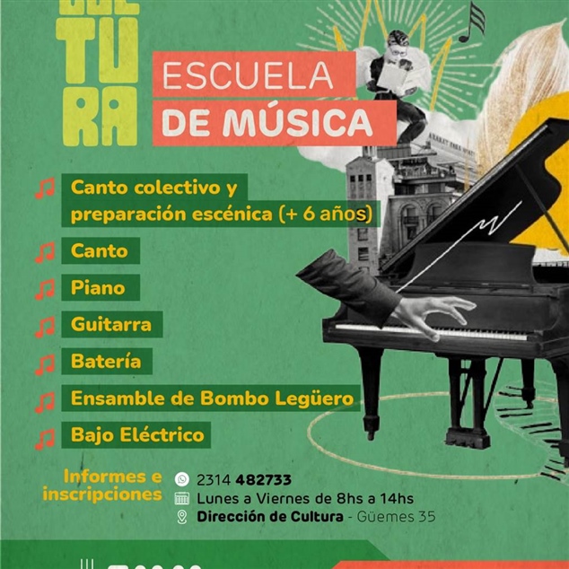 Asimismo, la Escuela de Música abre sus inscripciones con una propuesta destinada a infancias, jóvenes y adultos, que incluye canto colectivo y preparación escénica a partir de los 6 años, canto, piano, guitarra, batería y percusión, ensamble de bombo legüero y bajo eléctrico.
