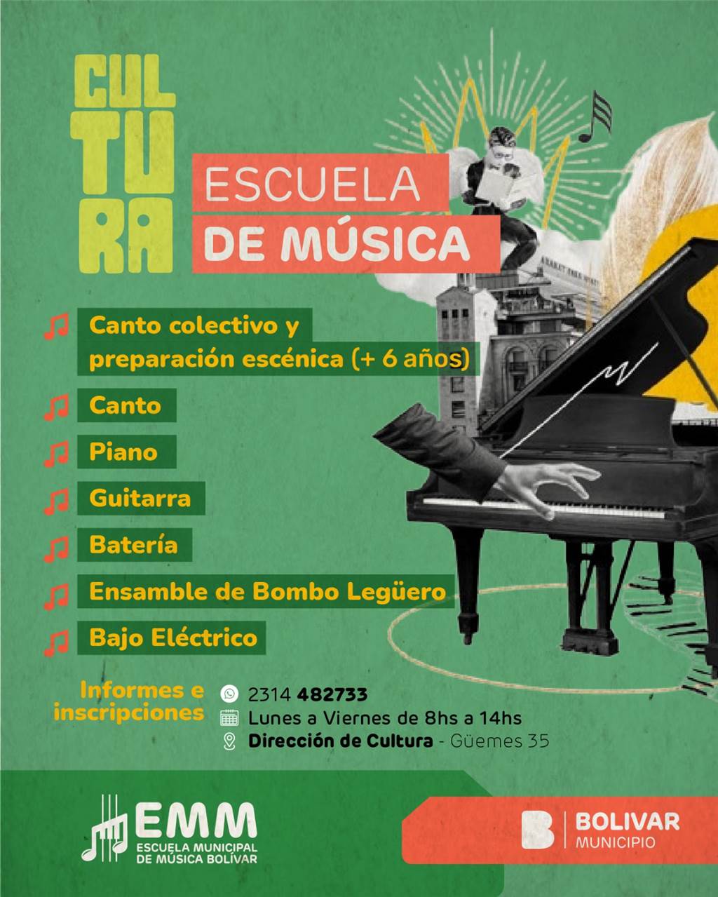 Las inscripciones se realizan de lunes a viernes de 8 a 14h en la Dirección de Cultura, ubicada en Güemes 35, o telefónicamente al 2314-482733.