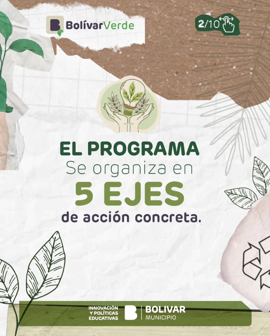 Bolívar Verde se organiza a partir de cinco ejes de acción que buscan generar cambios reales en las prácticas cotidianas y fortalecer el compromiso de la comunidad con el entorno: