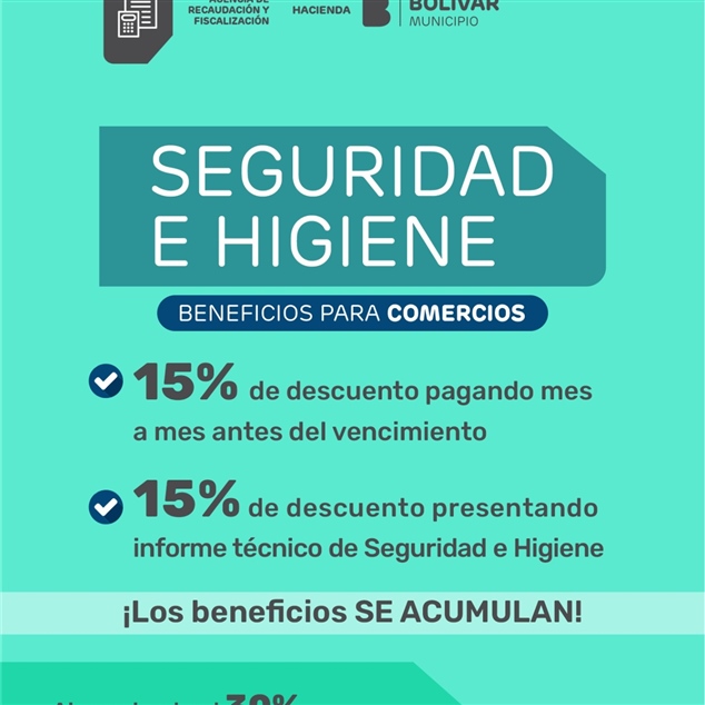 Para los comercios, la Tasa de Seguridad e Higiene contempla un 15% de descuento por abonar mes a mes, y otro 15% por presentar el informe técnico correspondiente, beneficios que pueden sumarse y alcanzar un 30% de descuento total.