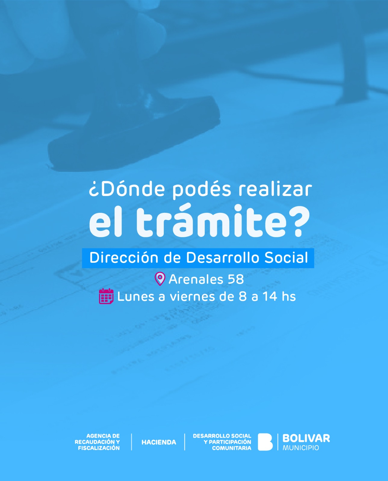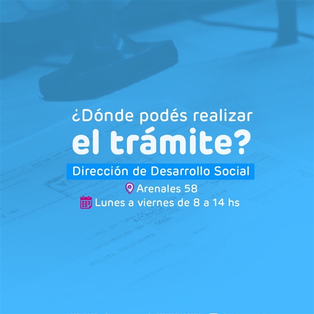 El trámite se realiza en la Dirección de Desarrollo Social, ubicada en Arenales 58, de lunes a viernes de 8 a 14 hs.