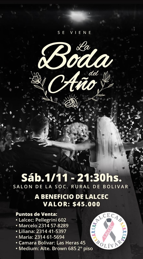 Evento La Boda del Año Actividad para Juntar Fondos para LALCEC 1 de Noviembre en la Rural