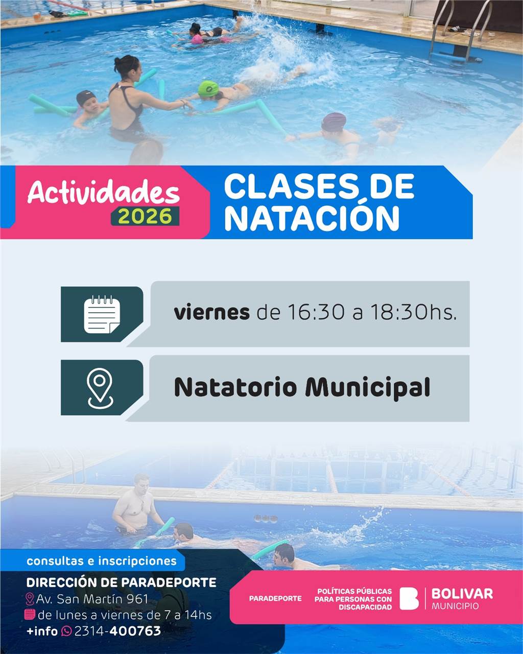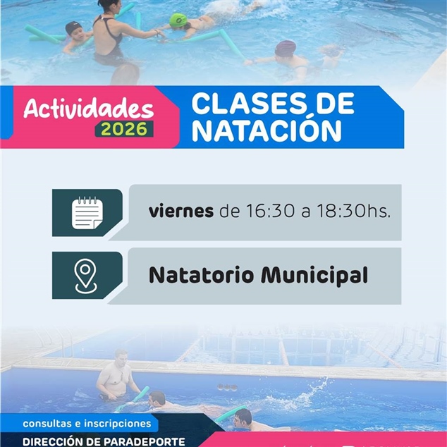 Mientras que, este viernes 17 comienzan las clases de Natación en el Natatorio Municipal, que serán los días viernes de 16.30 a 18.30h, con los profesores Erick Campitelli, Agostina Pérez Álvarez y Emilio luna.
