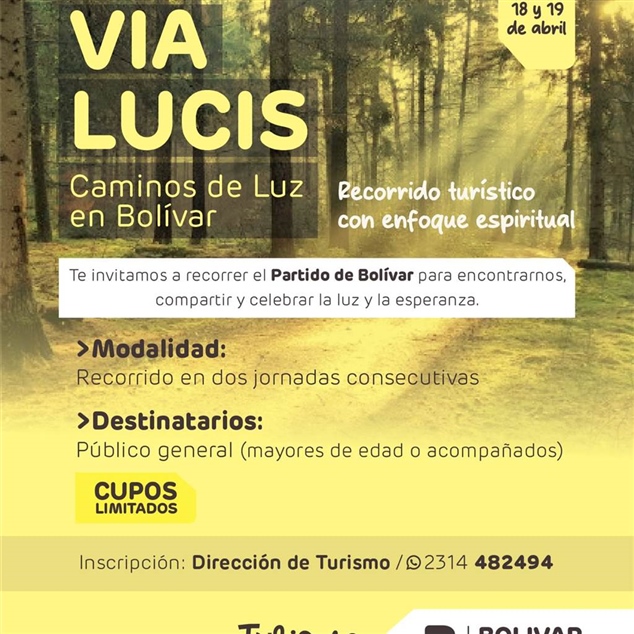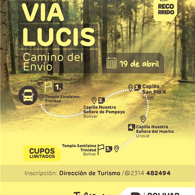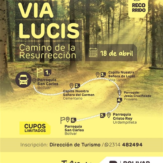 El Municipio de Bolívar, a través de la Dirección de Turismo en conjunto con la Iglesia San Carlos Borromeo y las Capillas del Partido, invita a participar de “Vía Lucis – Caminos de Luz en Bolívar”, una propuesta que combina el recorrido turístico con una experiencia espiritual única, los días 18 y 19 de abril.