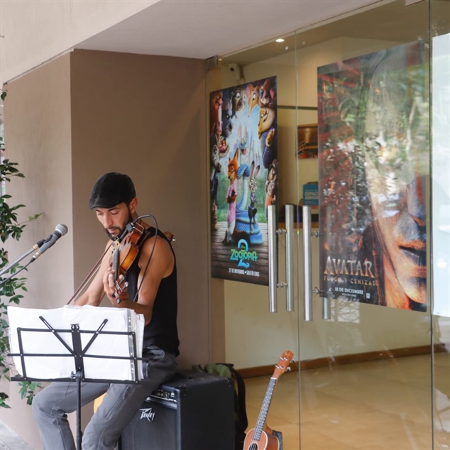 Minutos antes de la primera función, el público fue recibido con una propuesta especial que incluyó música en vivo a cargo del violinista Diego Peris, pintura de caras para niños y niñas, y un espacio para fotografías junto a los posters de la película, generando un clima de festejo y encuentro.