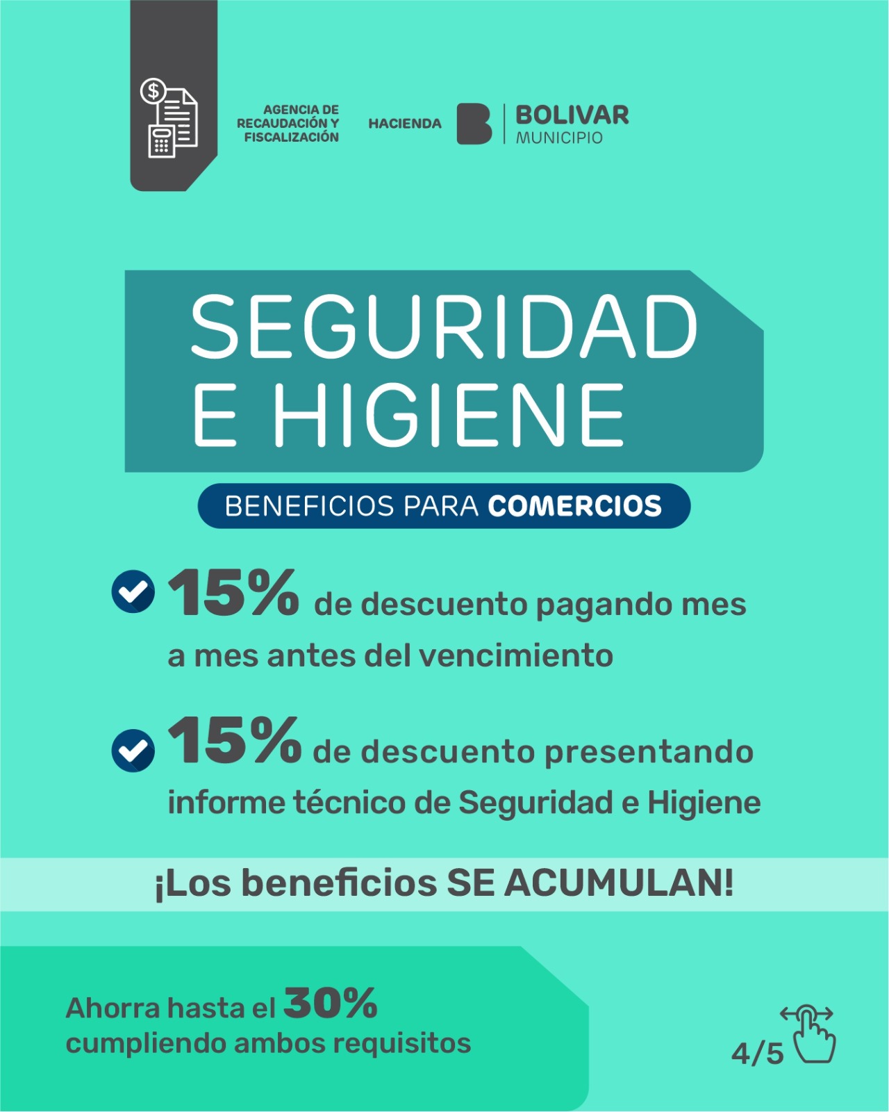 Para los comercios, la Tasa de Seguridad e Higiene contempla un 15% de descuento por abonar mes a mes, y otro 15% por presentar el informe técnico correspondiente, beneficios que pueden sumarse y alcanzar un 30% de descuento total.