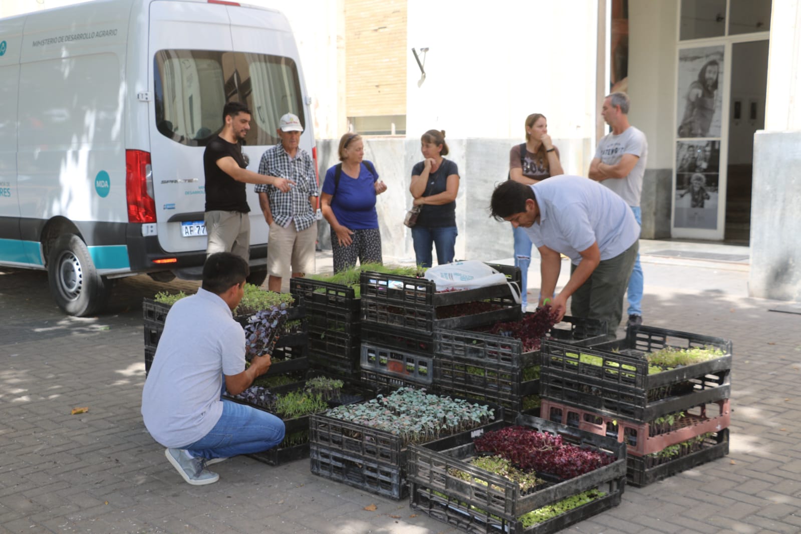 Los plantines entregados corresponden a especies de estación e incluyen repollo, tomate, morrón, lechuga morada y verde, acelga, brócoli e hinojo, destinados a fortalecer las producciones locales y comunitarias.